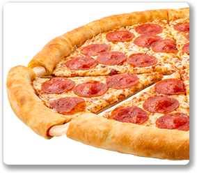 Pizza de pepperoni con orilla rellena de queso y pepperoni.